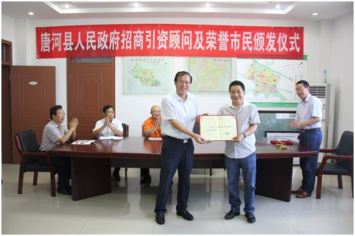 唐河縣人民政府舉行招商引資顧問(wèn)及 榮譽(yù)市民頒發(fā)儀式